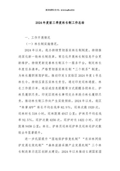 / 【七哥公文】2024年:2024年度前三季度林长制工作总结+更多免费公文+VX:QiGeGongWen2024