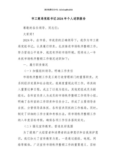 / 【七哥公文】2024年:市工商局党组书记2024年个人述职报告+更多免费公文+VX:QiGeGongWen2024