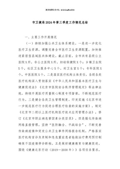 / 【七哥公文】2024年:市卫健局2024年第三季度工作情况总结+更多免费公文+VX:QiGeGongWen2024