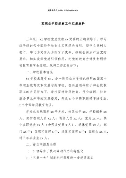 / 【七哥公文】2024年:某职业学校巡察工作汇报材料 (1)+更多免费公文+VX:QiGeGongWen2024