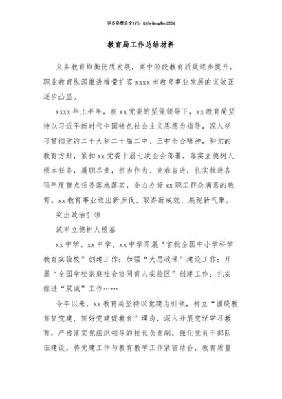 【七哥公文】2024年:教育局工作总结材料+更多免费公文+VX:QiGeGongWen2024