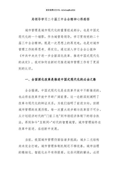 / 【七哥公文】2024年:局领导学习二十届三中全会精神心得感悟+更多免费公文+VX:QiGeGongWen2024
