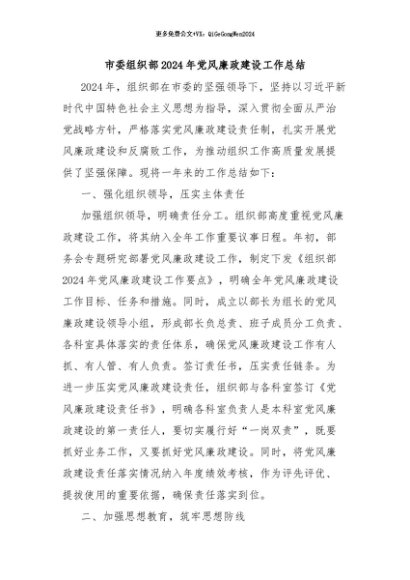 / 【七哥公文】2024年:市委组织部2024年党风廉政建设工作总结+更多免费公文+VX:QiGeGongWen2024