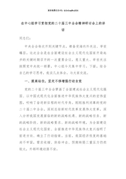 【七哥公文】2024年:在中心组学习贯彻党的二十届三中全会精神研讨会上的讲话+更多免费公文+VX:QiGeGongWen2024