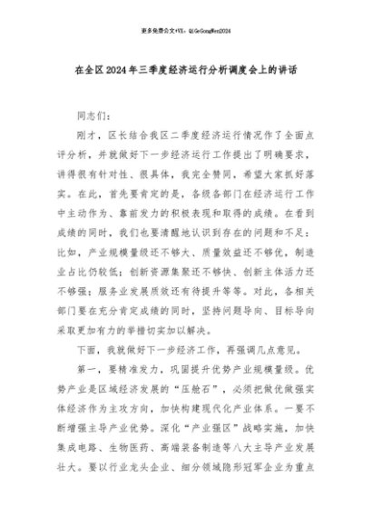 【七哥公文】2024年:在全区2024年三季度经济运行分析调度会上的讲话 (1)+更多免费公文+VX:QiGeGongWen2024