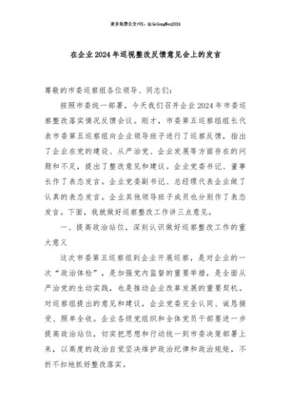 / 【七哥公文】2024年:在企业2024年巡视整改反馈意见会上的发言+更多免费公文+VX:QiGeGongWen2024