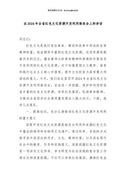 【七哥公文】2024年:在2024年全省红色文化资源开发利用推进会上的讲话+更多免费公文+VX:QiGeGongWen2024