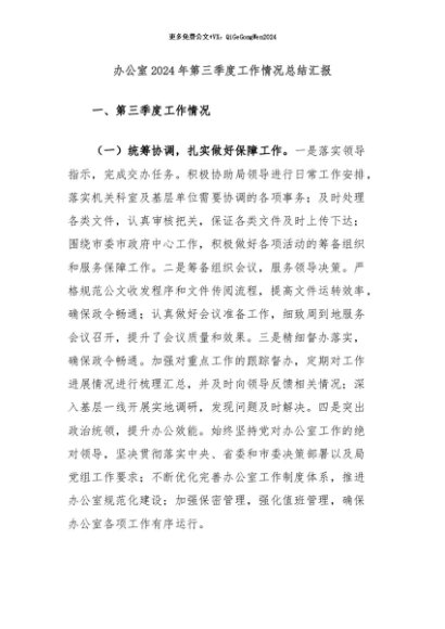 【七哥公文】2024年:办公室2024年第三季度工作情况总结汇报 (1)+更多免费公文+VX:QiGeGongWen2024