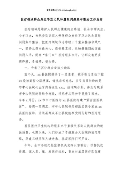 【七哥公文】2024年:医疗领域群众身边不正之风和腐败问题集中整治工作总结+更多免费公文+VX:QiGeGongWen2024