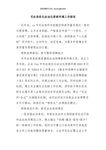 / 【七哥公文】2024年:司法局优化法治化营商环境工作综述+更多免费公文+VX:QiGeGongWen2024