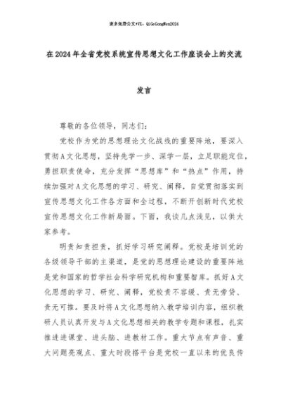 【七哥公文】2024年:在2024年全省党校系统宣传思想文化工作座谈会上的交流发言+更多免费公文+VX:QiGeGongWen2024