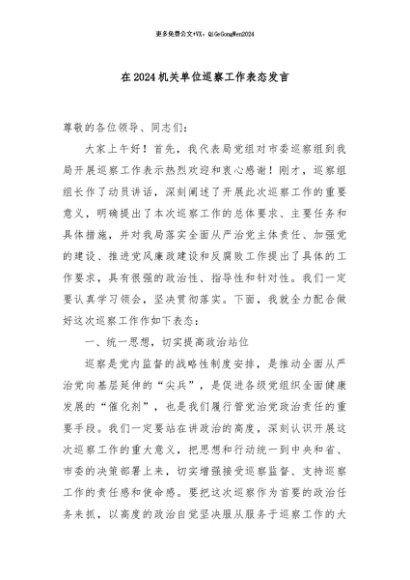 / 【七哥公文】2024年:在2024机关单位巡察工作表态发言 (1)+更多免费公文+VX:QiGeGongWen2024