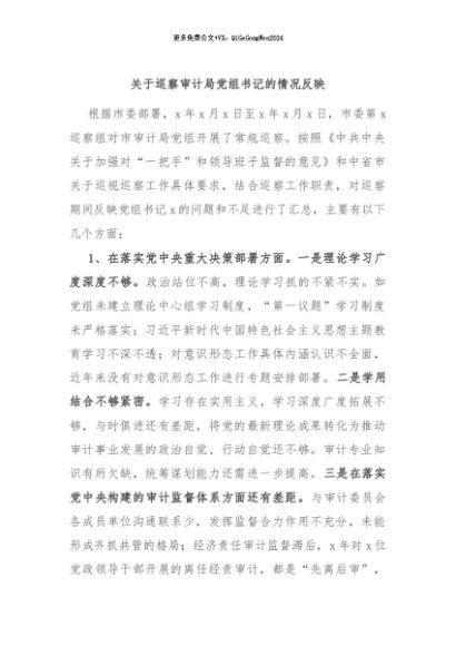 / 【七哥公文】2024年:关于巡察审计局党组书记的情况反映+更多免费公文+VX:QiGeGongWen2024