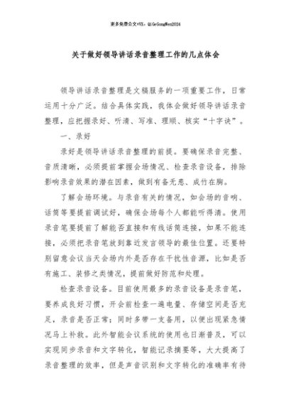/ 【七哥公文】2024年:关于做好领导讲话录音整理工作的几点体会 (1)+更多免费公文+VX:QiGeGongWen2024