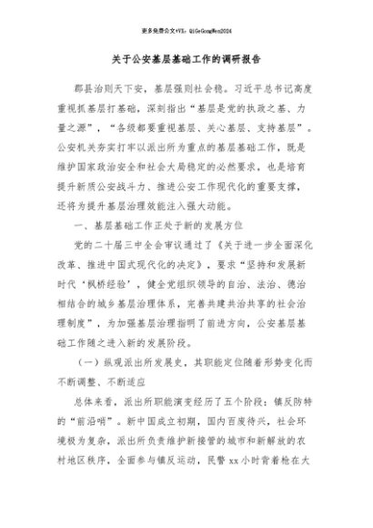 / 【七哥公文】2024年:关于公安基层基础工作的调研报告+更多免费公文+VX:QiGeGongWen2024