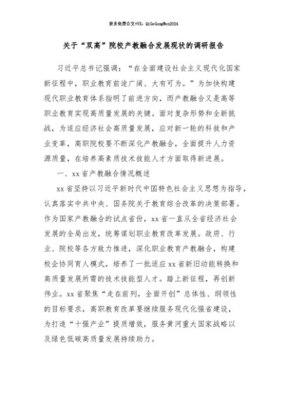 【七哥公文】2024年:关于“双高”院校产教融合发展现状的调研报告 (1)+更多免费公文+VX:QiGeGongWen2024