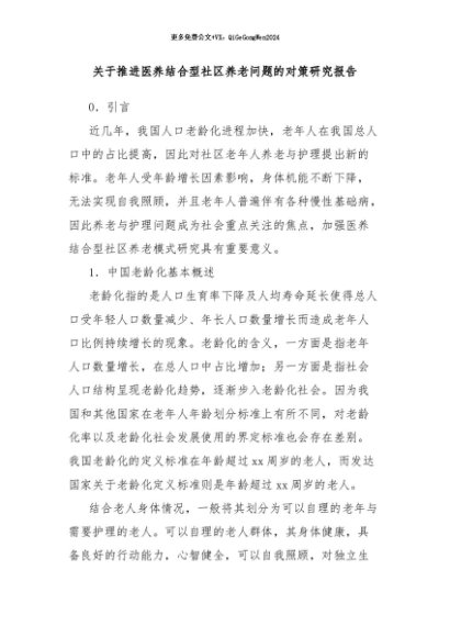 / 【七哥公文】2024年:关于推进医养结合型社区养老问题的对策研究报告+更多免费公文+VX:QiGeGongWen2024