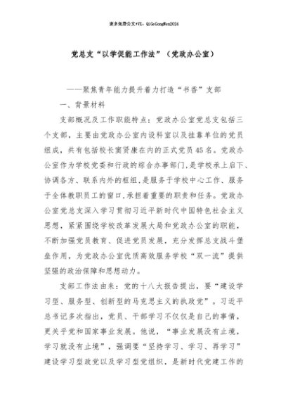 / 【七哥公文】2024年:党总支“以学促能工作法”(党政办公室)+更多免费公文+VX:QiGeGongWen2024