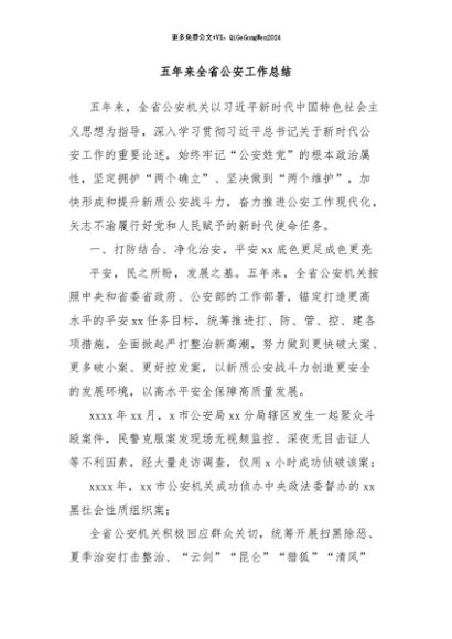 / 【七哥公文】2024年:五年来全省公安工作总结+更多免费公文+VX:QiGeGongWen2024