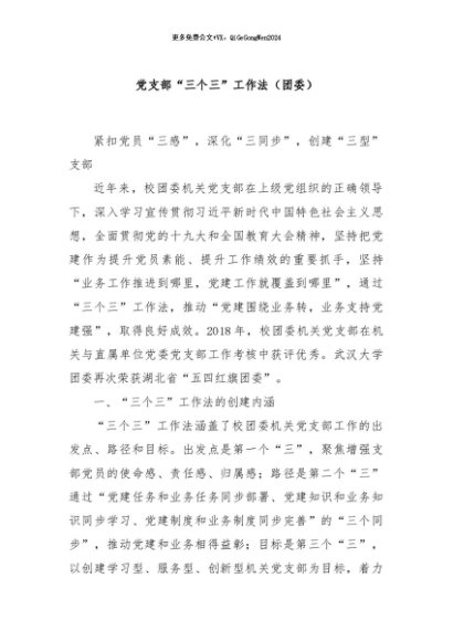 / 【七哥公文】2024年:党支部“三个三”工作法(团委)+更多免费公文+VX:QiGeGongWen2024