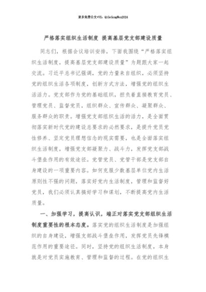 / 【七哥公文】2024年:严格落实组织生活制度 提高基层党支部建设质量+更多免费公文+VX:QiGeGongWen2024