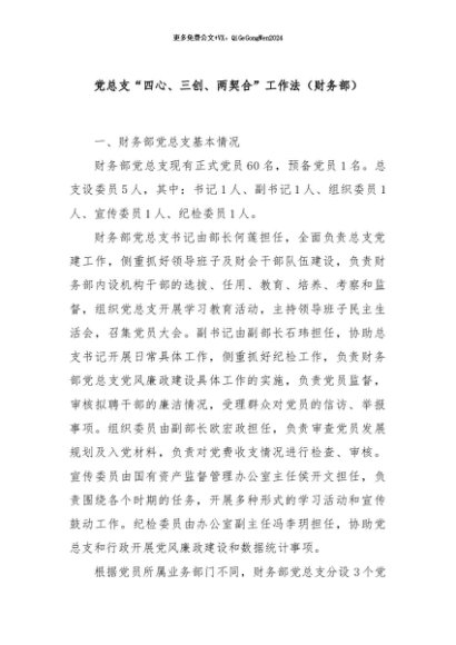 / 【七哥公文】2024年:党总支“四心、三创、两契合”工作法(财务部)+更多免费公文+VX:QiGeGongWen2024
