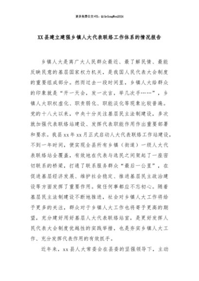 / 【七哥公文】2024年:XX县建立建强乡镇人大代表联络工作体系的情况报告+更多免费公文+VX:QiGeGongWen2024