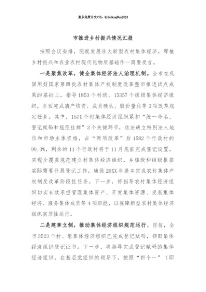 / 【七哥公文】2024年:市推进乡村振兴情况汇报+更多免费公文+VX:QiGeGongWen2024