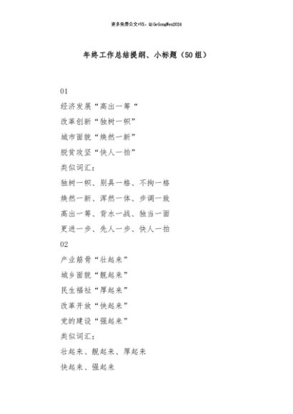 / 【七哥公文】2024年:(50组)年终工作总结提纲、 小标题+更多免费公文+VX:QiGeGongWen2024