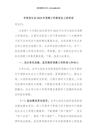 / 【七哥公文】2024年:市局局长在2024年党建工作推进会上的讲话+更多免费公文+VX:QiGeGongWen2024