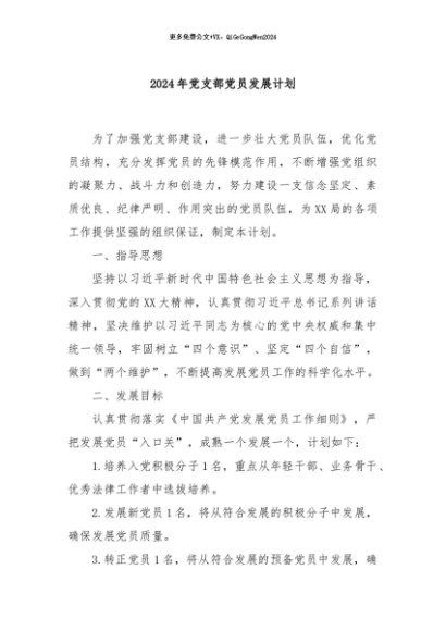 / 【七哥公文】2024年:2024年党支部党员发展计划+更多免费公文+VX:QiGeGongWen2024