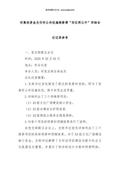 【七哥公文】2024年:村集体资金支付村公共设施维修费“四议两公开”详细会议记录参考+更多免费公文+VX:QiGeGongWen2024