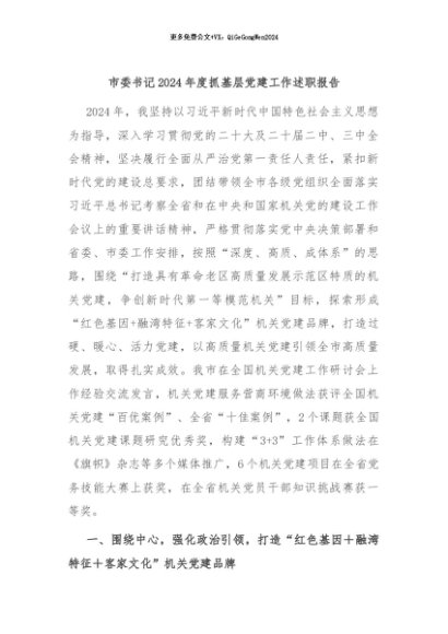 / 【七哥公文】2024年:市委书记2024年度抓基层党建工作述职报告+更多免费公文+VX:QiGeGongWen2024