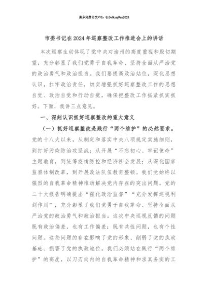 / 【七哥公文】2024年:市委书记在2024年巡察整改工作推进会上的讲话+更多免费公文+VX:QiGeGongWen2024