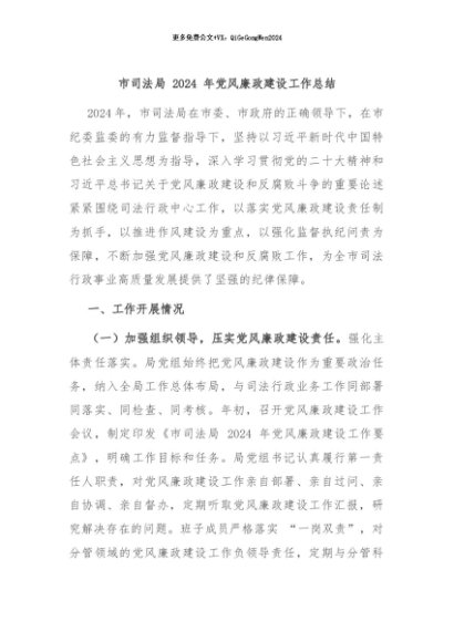 / 【七哥公文】2024年:市司法局 2024 年党风廉政建设工作总结+更多免费公文+VX:QiGeGongWen2024