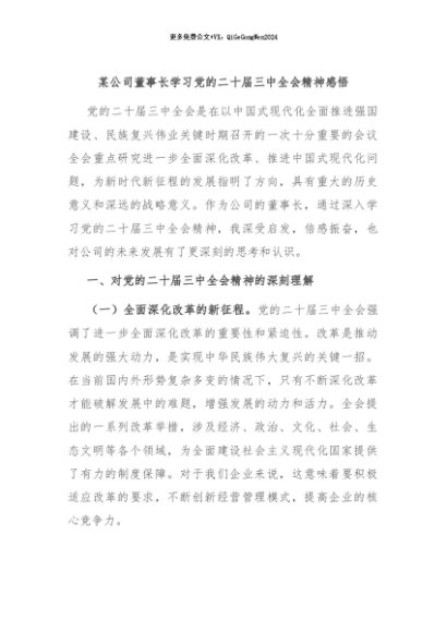 / 【七哥公文】2024年:某公司董事长学习党的二十届三中全会精神感悟+更多免费公文+VX:QiGeGongWen2024
