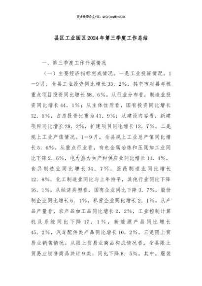 / 【七哥公文】2024年:县区工业园区2024年第三季度工作总结+更多免费公文+VX:QiGeGongWen2024