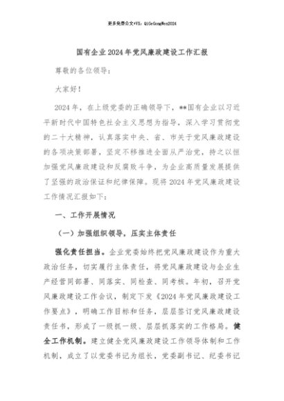 / 【七哥公文】2024年:国有企业2024年党风廉政建设工作汇报+更多免费公文+VX:QiGeGongWen2024