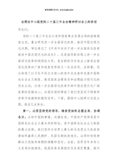 / 【七哥公文】2024年:在理论中心组党的二十届三中全会精神研讨会上的讲话+更多免费公文+VX:QiGeGongWen2024