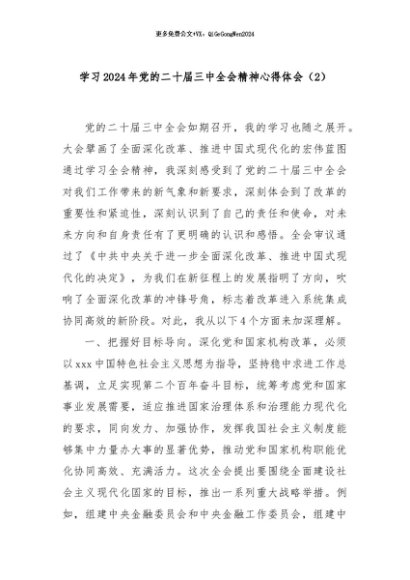 【七哥公文】2024年:学习2024年党的二十届三中全会精神心得体会(2)+更多免费公文+VX:QiGeGongWen2024