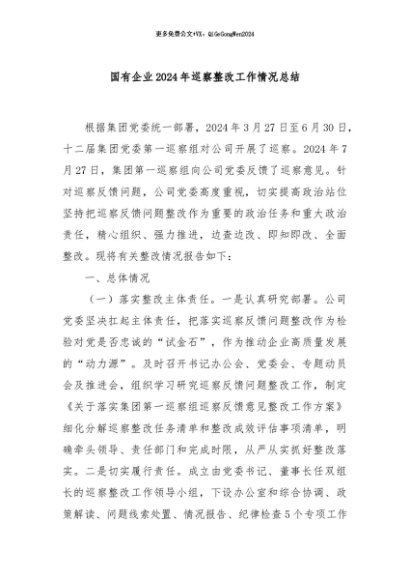 / 【七哥公文】2024年:国有企业2024年巡察整改工作情况总结+更多免费公文+VX:QiGeGongWen2024