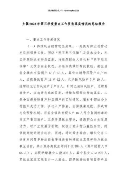 【七哥公文】2024年:乡镇2024年第三季度重点工作贯彻落实情况的总结报告+更多免费公文+VX:QiGeGongWen2024