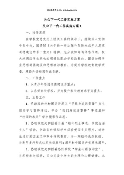/ 【七哥公文】2024年:关心下一代工作实施方案 (1)+更多免费公文+VX:QiGeGongWen2024
