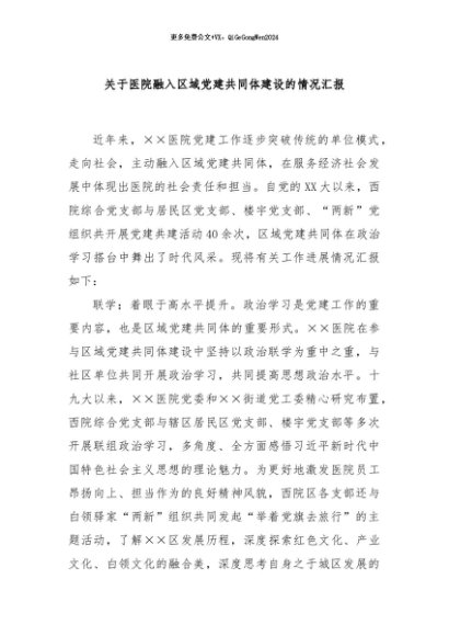 / 【七哥公文】2024年:关于医院融入区域党建共同体建设的情况汇报+更多免费公文+VX:QiGeGongWen2024