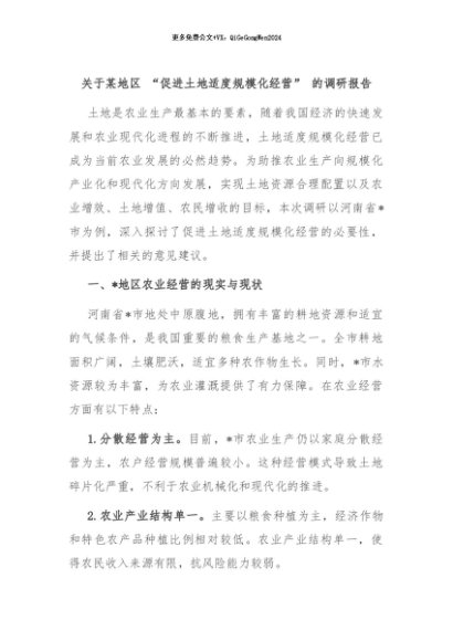 【七哥公文】2024年:关于某地区 “促进土地适度规模化经营” 的调研报告+更多免费公文+VX:QiGeGongWen2024