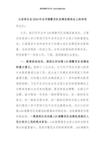 【七哥公文】2024年:公安局长在2024年全市接警员队伍建设推进会上的讲话+更多免费公文+VX:QiGeGongWen2024