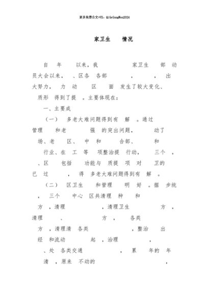 / 【七哥公文】2024年:XX市创建国家卫生城市情况报告+更多免费公文+VX:QiGeGongWen2024