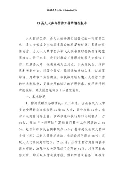 / 【七哥公文】2024年:XX县人大参与信访工作的情况报告+更多免费公文+VX:QiGeGongWen2024