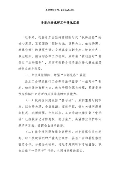 / 【七哥公文】2024年:矛盾纠纷化解工作情况汇报+更多免费公文+VX:QiGeGongWen2024