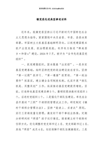 / 【七哥公文】2024年:镇党委先进典型事迹材料+更多免费公文+VX:QiGeGongWen2024